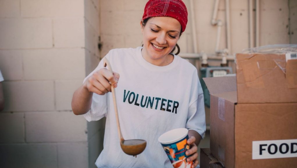 2. Passing meals out to lots of people on the streets.